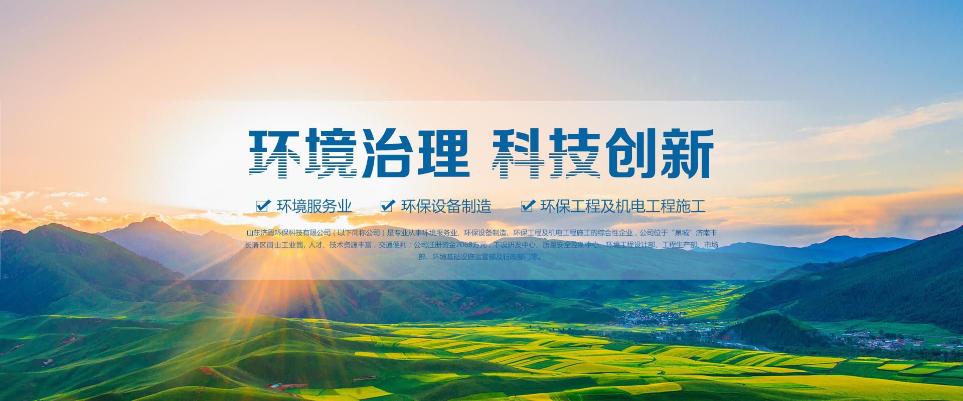 山東濟恩環保科技有限公司(以下簡稱公司)是專業從事大氣污染治理、中水及凈水處理、節能供熱設備的研發生產銷售及環境設施節能運營于一體的綜合性生態建設供應商,公司位于“泉城”濟南市長清區崮山工業園,人才、技術資源豐富,交通便利,公司注冊資金6780萬元,下設研發中心、質量安全控制中心、環境及熱能技術部、工程部、市場部、設施運營部、財務部及行政部門等。